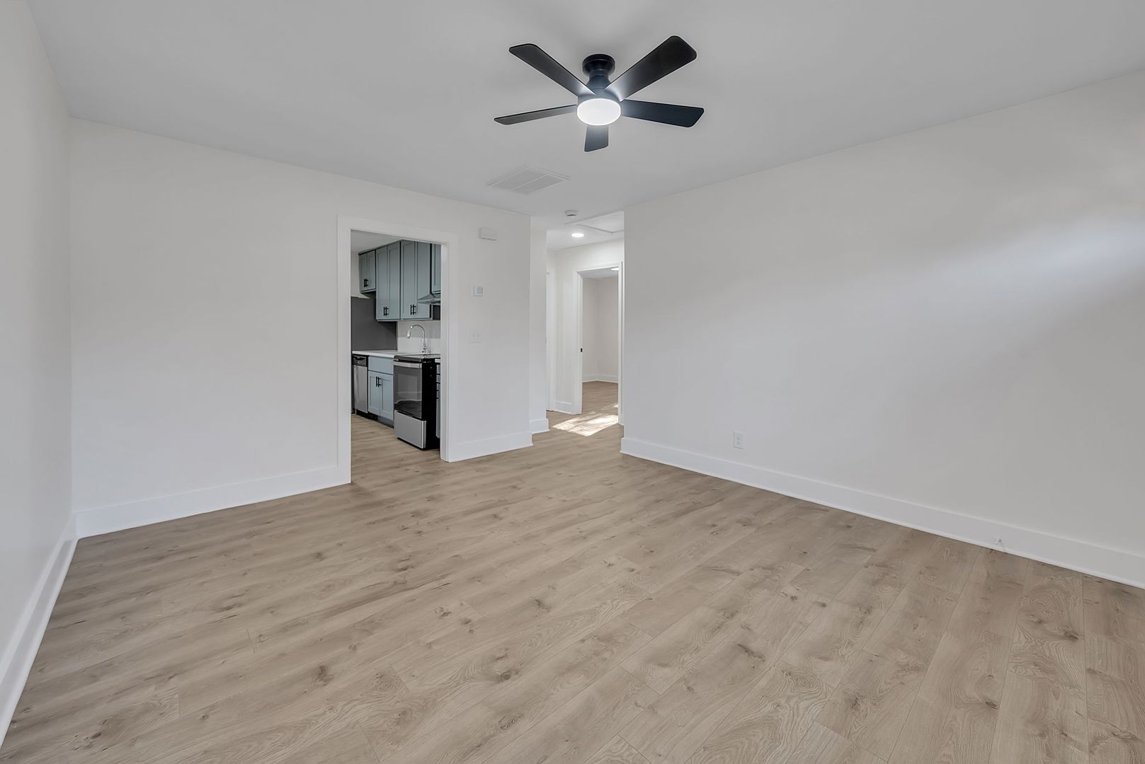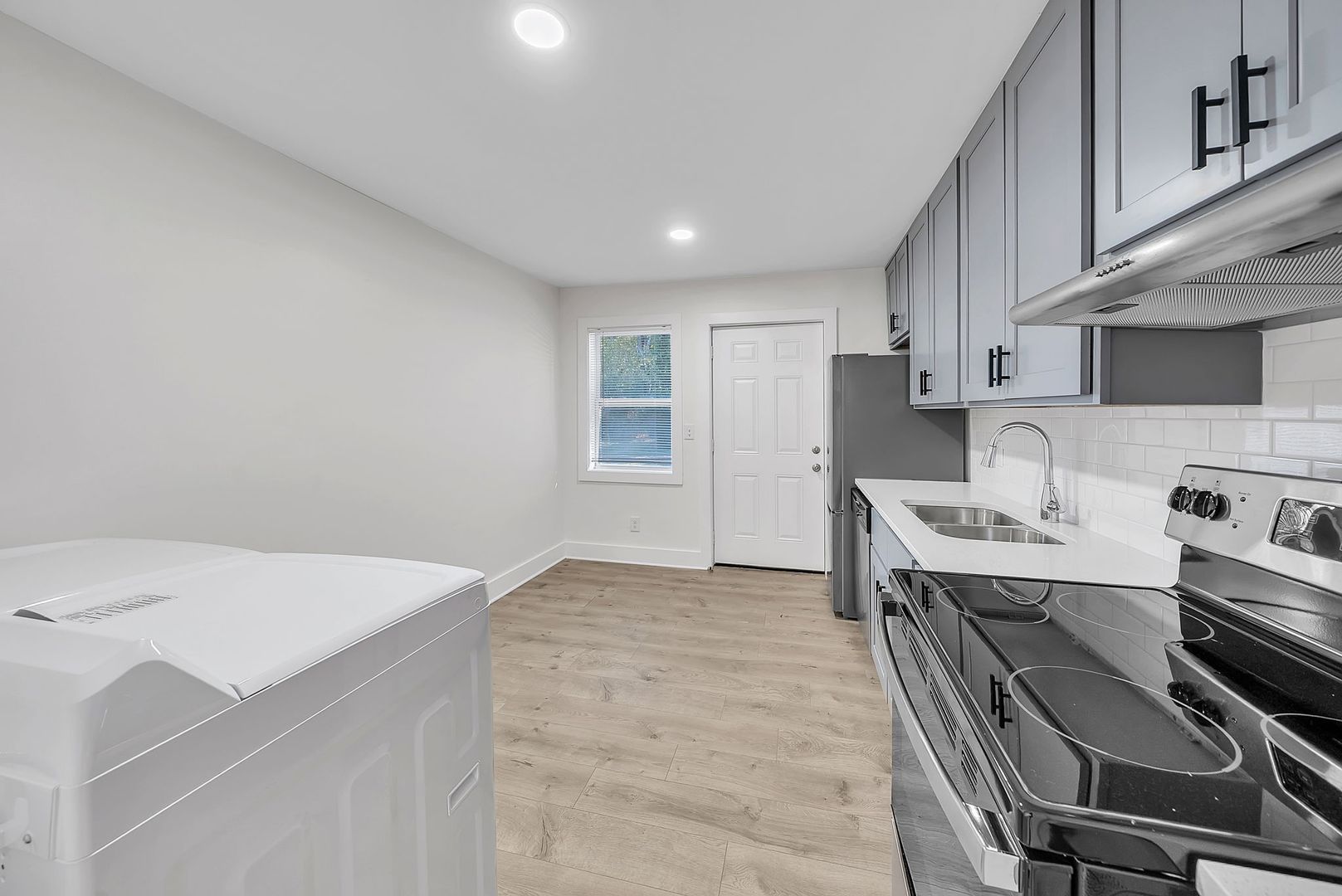 Welcome to 510 S Branch St, a charming residence nestled in the heart of Spring Hope, NC. This home boasts two spacious bedrooms and a full bathroom, making it an ideal space for comfortable living. The interior has been freshly painted, providing a clean and modern feel. The kitchen is a chef's dream, featuring new cabinets, quartz countertops, and stainless steel appliances. The new LVP flooring throughout the house adds a touch of elegance and durability. The home also comes with a washer and dryer, adding convenience to your daily routine. Ceiling fans are installed in each room, ensuring a comfortable atmosphere year-round. The bathroom is updated with new vanities, and a tile shower tub combo. Experience the perfect blend of style and functionality at 510 S Branch St. To qualify applicants must make 3x the monthly rent for income, have a 640 or higher credit score and have a clean rental and criminal history.